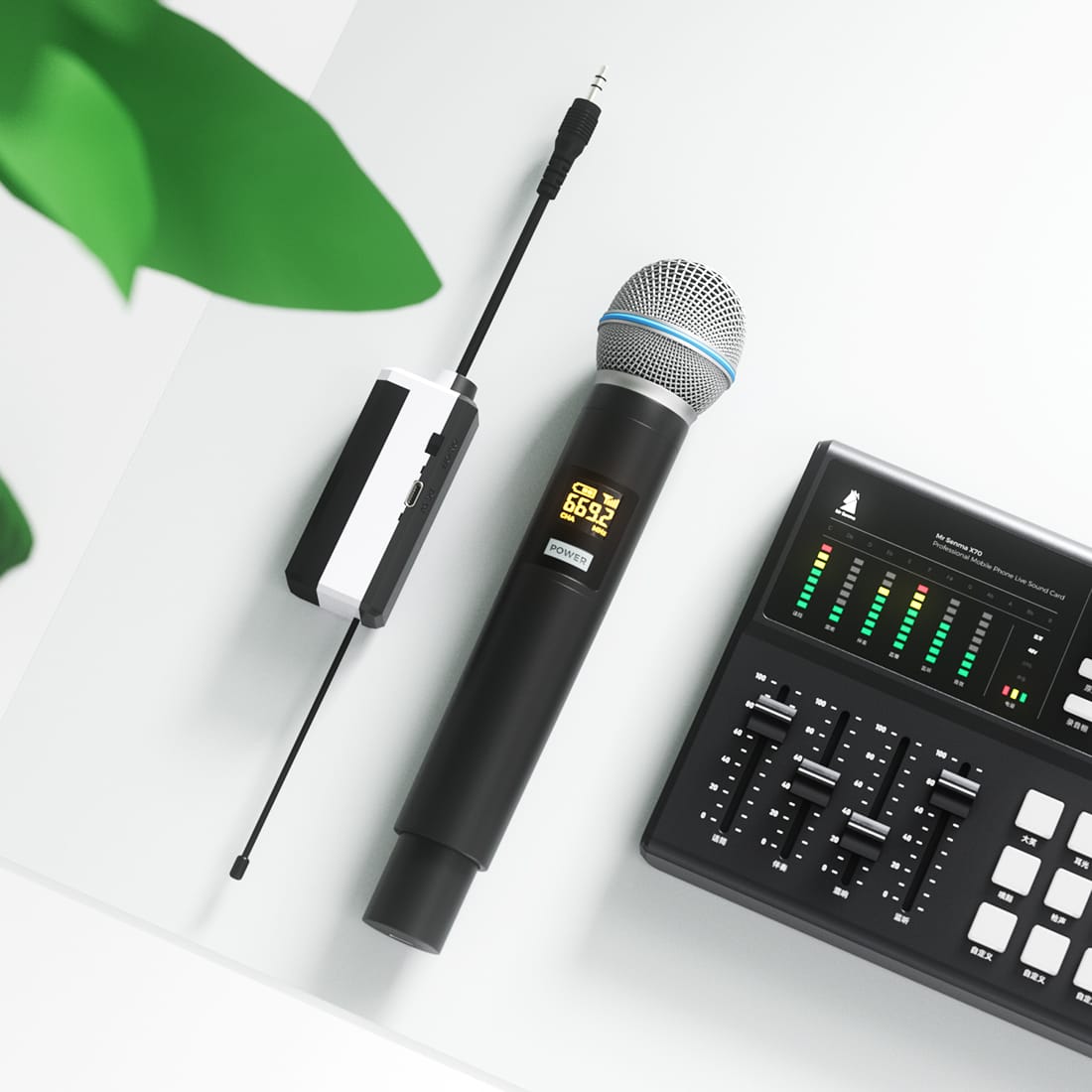 The device employs DSP digital wireless transmission technology, operating within the 677.7–696.3MHz frequency band. It features 16 anti-interference channels and automatic frequency hopping functionality, ensuring stable, low-latency connections. It is compatible with mainstream devices and supports plug-and-play functionality.